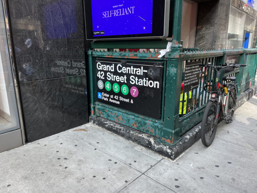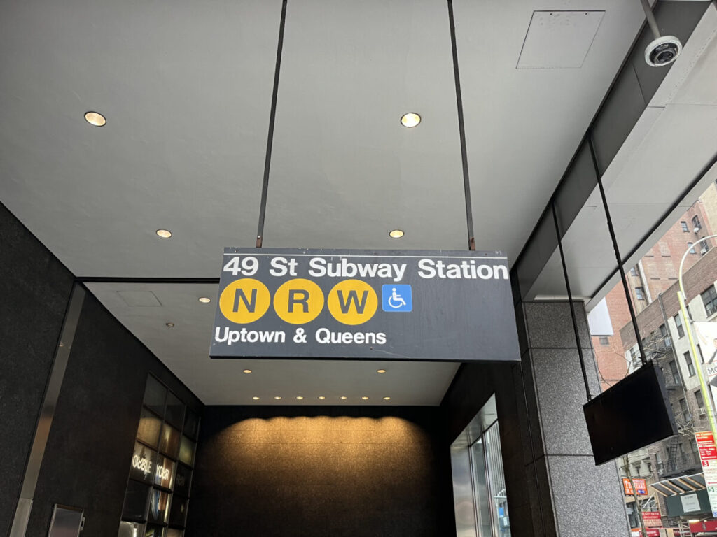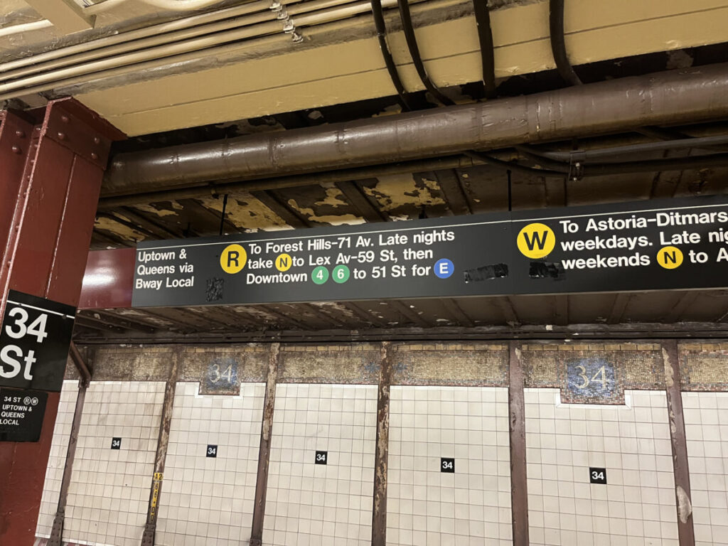 何の変哲もない看板に見えるかもしれませんが、路線案内の下に「Uptown & Queens」とありますね。