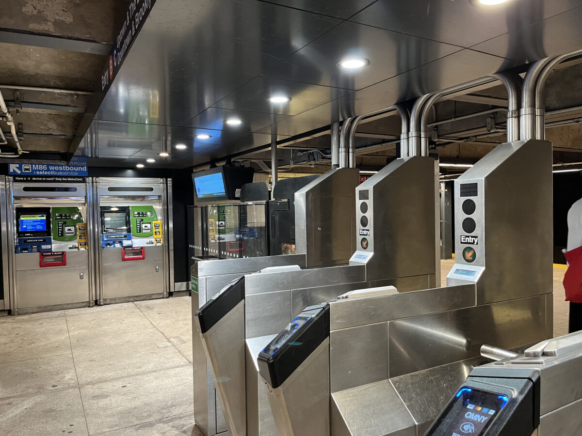 これが乗る時です。そして降りるとき、ニューヨークの地下鉄では改札にもう一度何かを通したりタッチさせたりする必要は一切ありません。改札をただ通るだけで問題ありません!