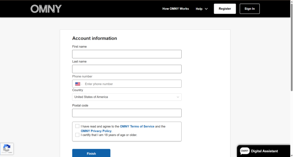 一つ目「私はOMNYの利用規約とOMNYのプライバシーポリシーを読み、同意しました。」
