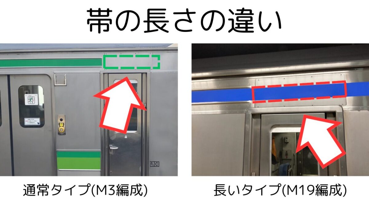 上の方の帯が方向幕を埋めてある部分まで伸びているのはM19編成です。