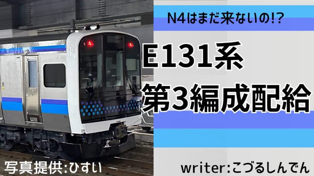 先日配給された、E131系800番台N3編成の様子を見ていきましょう。