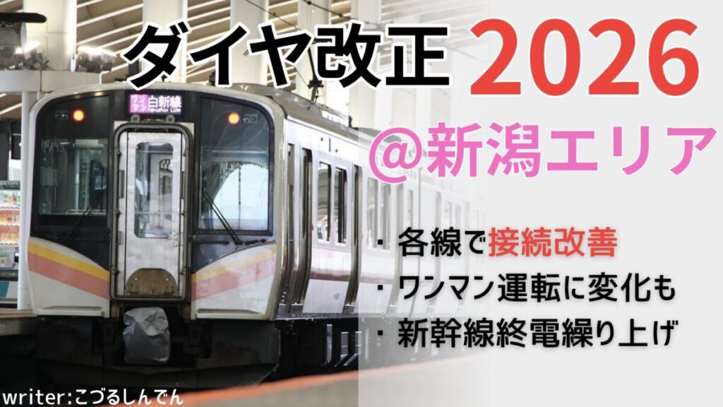 さすがに遅すぎだろと突っ込みが入りそうですが、今回は新潟地区の2026年春のダイヤ改正の様子を見ていきましょう。