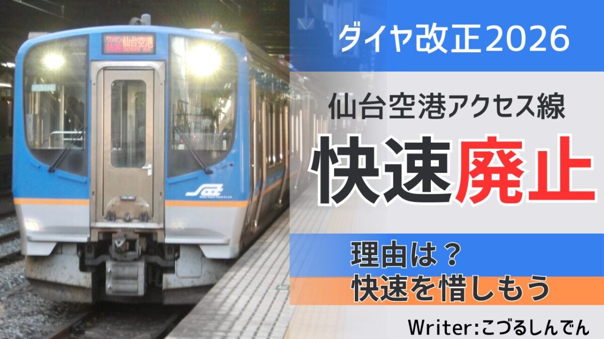 「ダイヤ改正で、仙台空港アクセス線から快速が消えるらしい」、こう聞くと某ピンクの路線みたいなまた改悪か……と思う人もいるかもしれません。