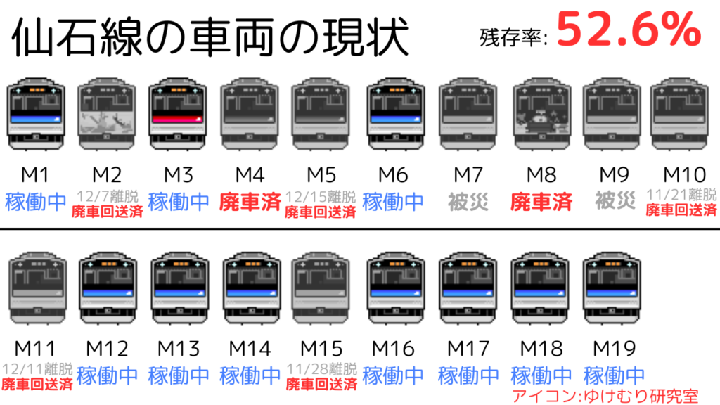 - M11編成 : 12/11離脱 (最終: 871S)、12/12~12/13にかけ小牛田に疎開