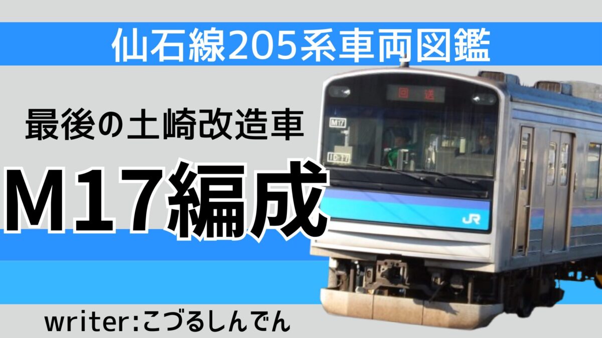 仙石線の個性豊かな車両たちを紹介する、仙石線車両図鑑。17回目の今回は、205系3100番台M17編成を紹介していこうと思います。