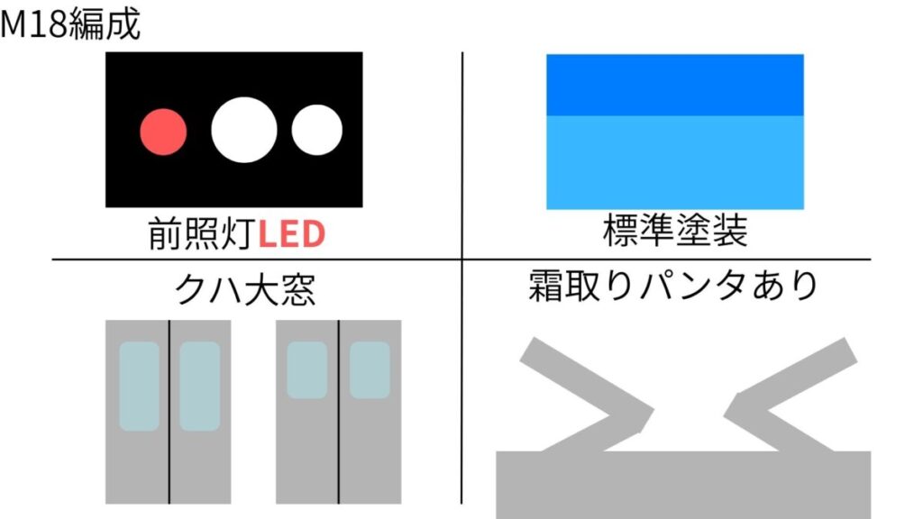 デフォルトはHID灯ですが、一部編成ではLEDに取り替えられているものもあります。