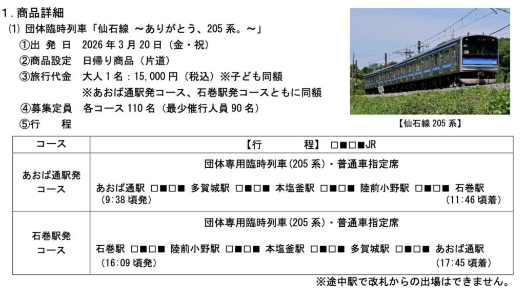 ・「仙石線 ~ありがとう、205 系。~」:3/20(金)運転