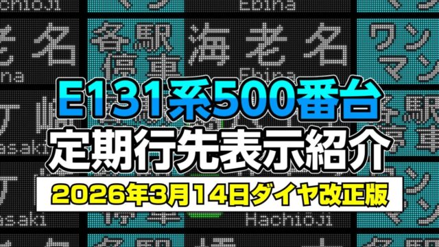 再現鉄 【2026年ダイヤ改正】E131系500番台で表示される行先表示【定期行先表示紹介第53弾】