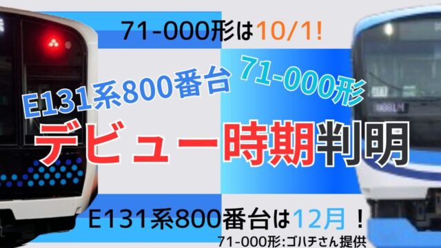 埼京・川越線・りんかい線直通 【新車ラッシュ】71-000形は10月デビュー!仙石線E131系も12月登場 こんにちは。こづるしんでんです。最近は新車が導入される路線が多いな〜と思っていたところ、なんとそのうち2形式の運転開始日が判明しました。今回は、そのりんかい線向けの「71-000形」と仙石線向けの「E131系800番台」について、デビュー日... 2025.09.27 こづるしんでん 埼京・川越線・りんかい線直通東北地方東日本記事首都圏