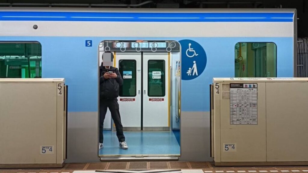 こちらのホームドアは空港線の次に設置されたグループで、開口幅は空港線より短い2,100mmとなっているため、空港線のホームドアに比べるとドア付近はあまり余裕がないように感じます。また空港線と同様に扉の引き残しがあるのも面白いポイントです。