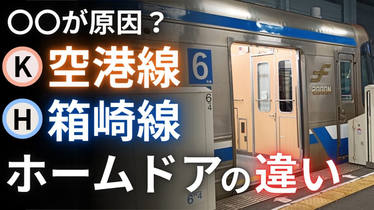 その違いとして代表的なものが、空港線のホームドアは開口幅が2,600mmとなっているものの、対する箱崎線のホームドアは空港線より500mm短い2,100mmとなっているという点です。