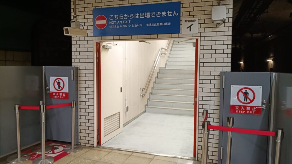 この「非常扉」の文字で察しがついた方も多くいらっしゃると思いますが、元々ここに改札口はなく避難用に整備された非常階段を活用したものとなっています。