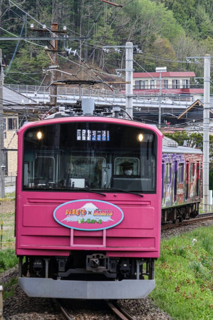 6702Fは有名アニメ「NARUTO」とコラボした「NARUTO×BORUTO富士 木ノ葉隠れの里号」として運行中。富士急ハイランドがNARUTOとコラボしているから、のようですね。
