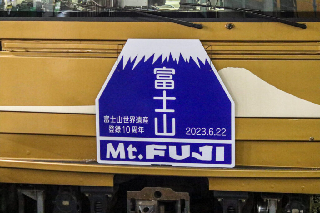 6701Fは富士急行線開業90周年を記念して、「富士急行線開業90周年記念車両」として活躍中。金色のゴージャスな塗装は、富士急行線の開業90周年を記念した塗装なんです。