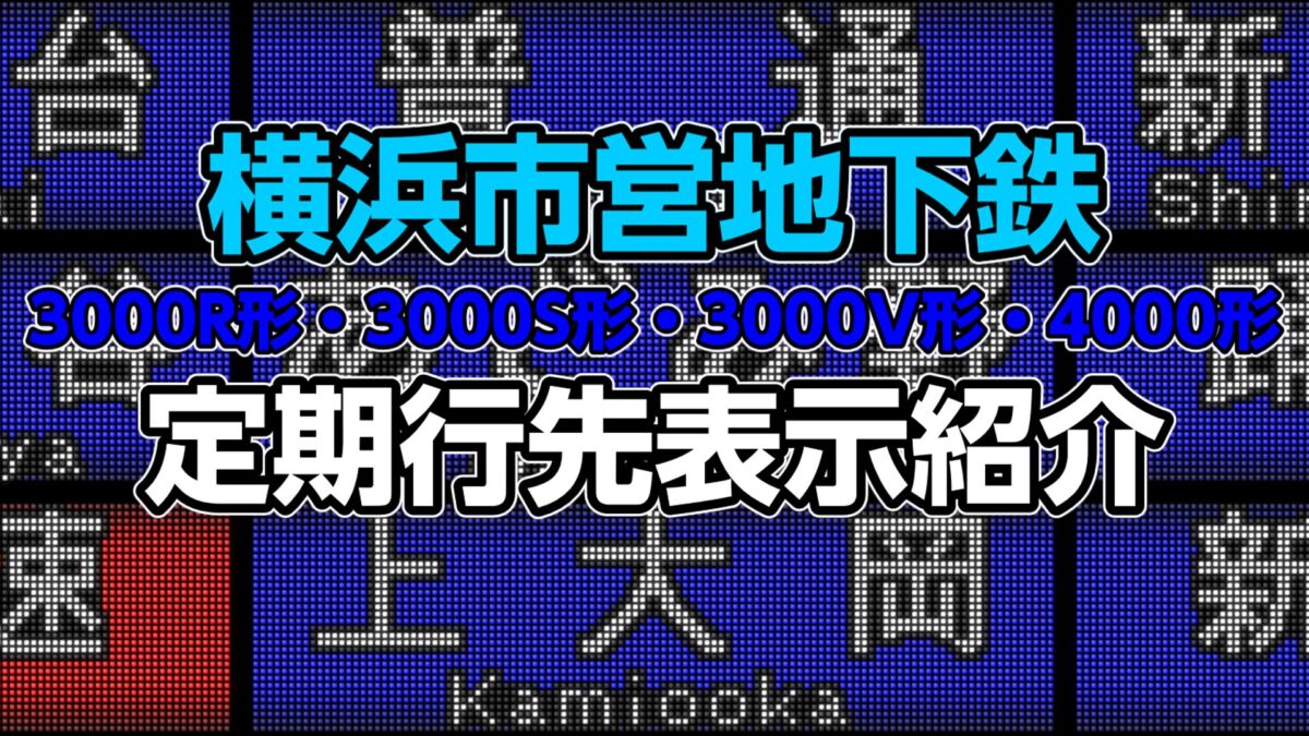 今回は前回に引き続き横浜市営地下鉄ブルーラインで走る最近の車両である、3000形3次車以降及び4000形、通称3000R形・3000S形・3000V形・4000形の定期行先表示を紹介いたします。