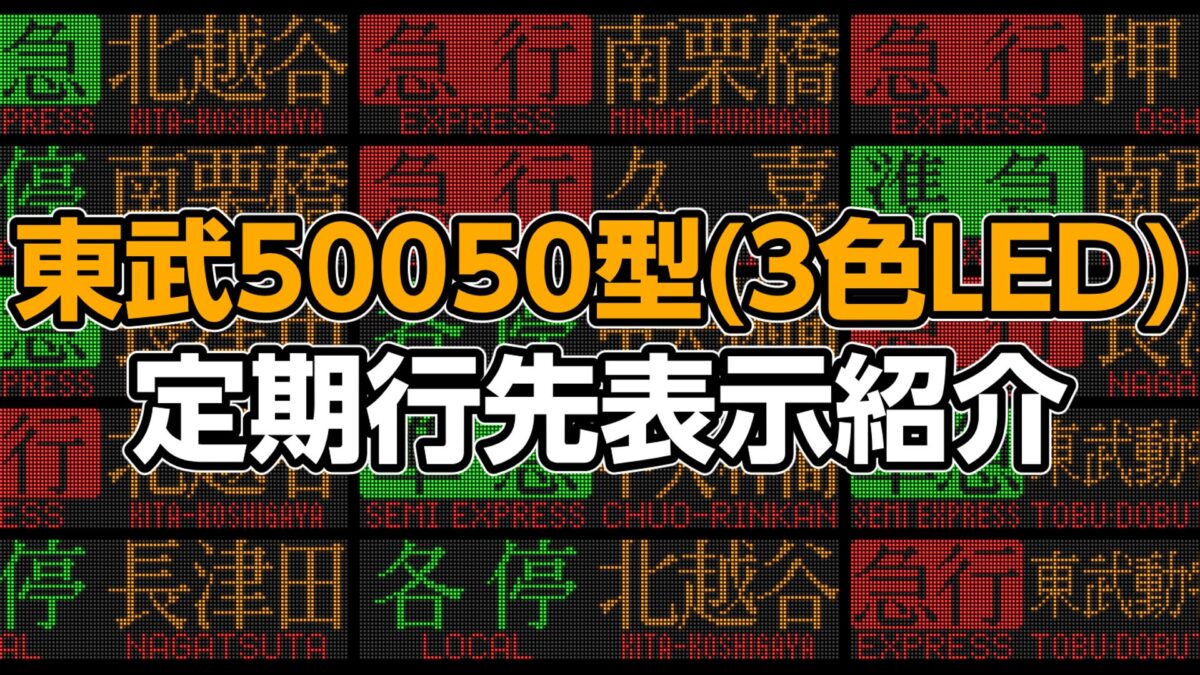 今回は東武スカイツリーラインに移りフルカラーLEDに換装されだんだん数が少なくなっている東武50050型3色LED車の定期行先表示を紹介します。