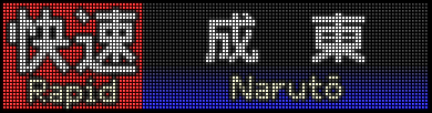 快速:東京・新日本橋・馬喰町・錦糸町・新小岩・市川・船橋・津田沼・稲毛・千葉・都賀~成田空港間各駅/千葉・本千葉・蘇我・鎌取・誉田・土気・大網・茂原・上総一ノ宮/千葉・本千葉・蘇我・浜野・八幡宿・五井・姉ケ崎・長浦・袖ケ浦・木更津・君津(横須賀線・総武本線佐倉~成東間・成田線成田~佐原間・鹿島線では普通表示)