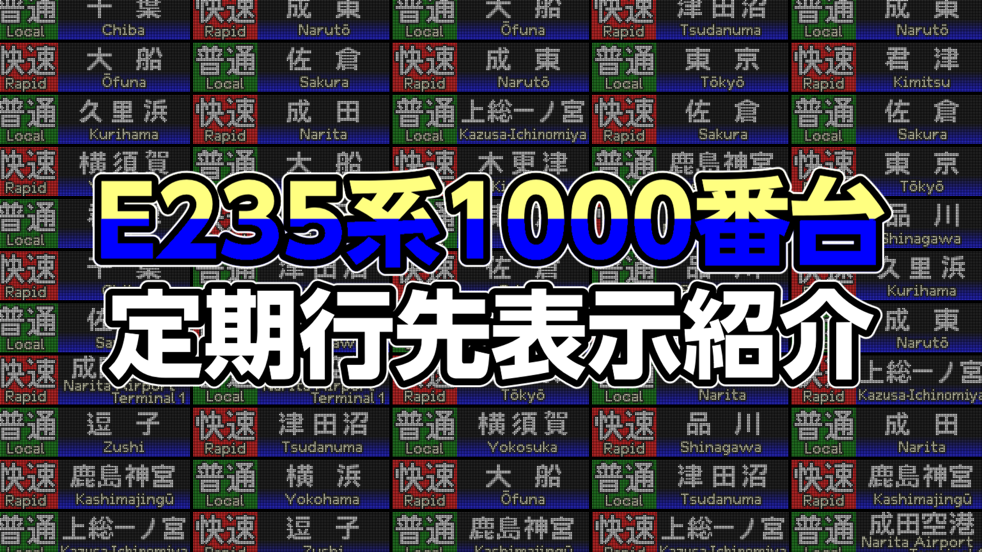 今回は関東に戻り横須賀線・総武快速線を中心に走るE235系1000番台の定期行先表示を紹介します。