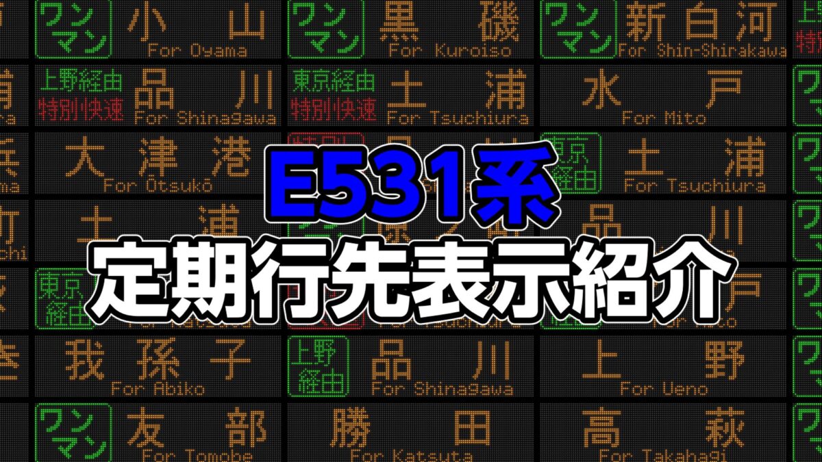 今回は常磐線・水戸線を中心に東北本線も走るE531系の定期行先表示を紹介します。