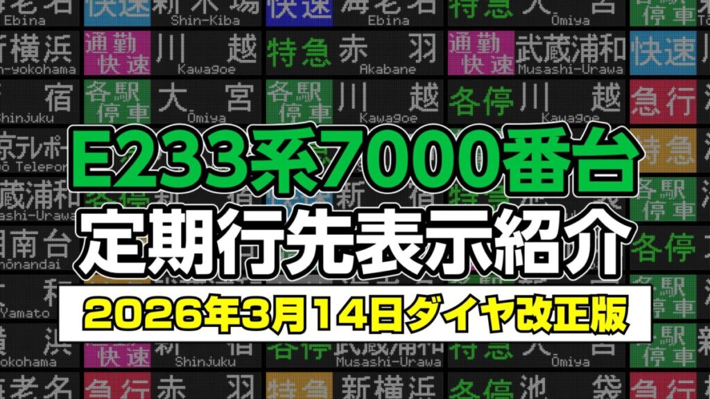 今回紹介するのは、りんかい線・埼京線・川越線・相鉄線を走っており、E233系列で唯一セサミクロLCDやATACSを導入しているE233系7000番台です。