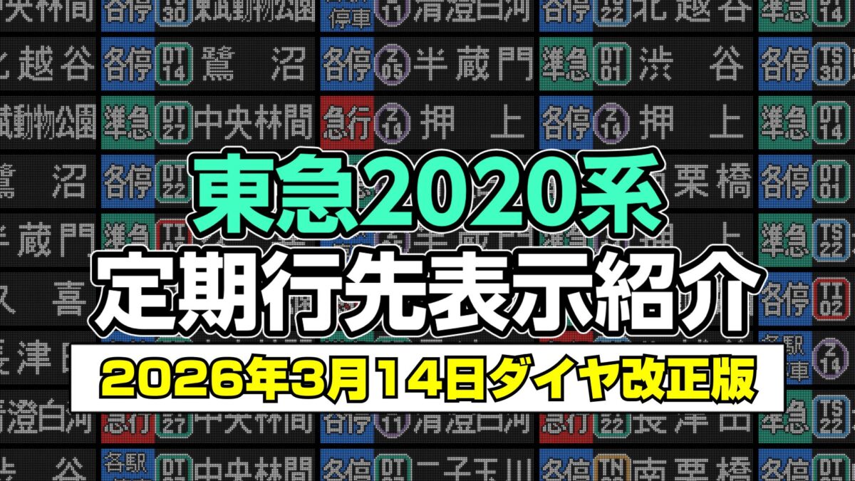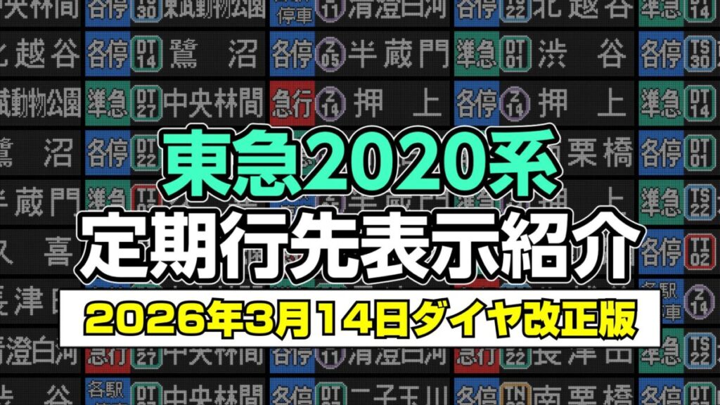 【2026年ダイヤ改正】東急2020系で表示される行先表示【定期行先表示紹介第67弾】