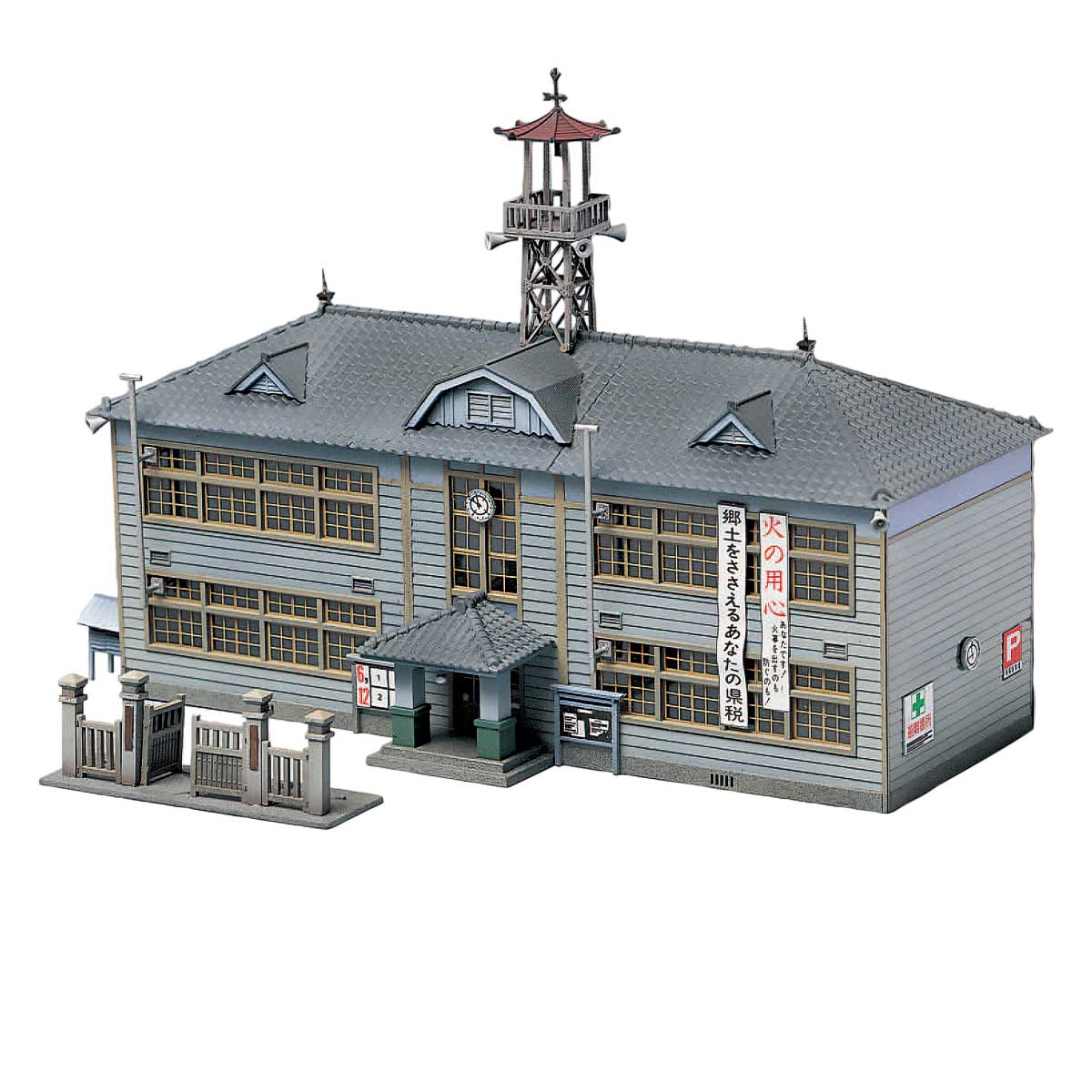 こちらも古めな木造の地方役場がライトグリーンの着色済みキットで登場。
