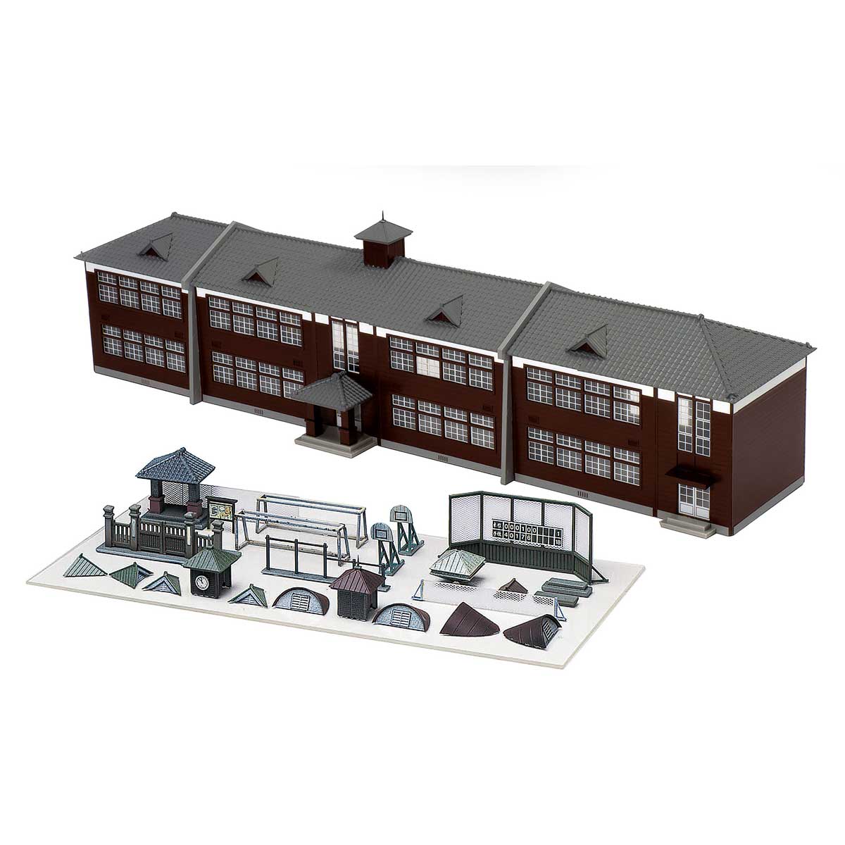 ローカル線沿線にありそうな茶色い校舎がダークブラウンの着色済みで登場。資料館などにも転用できそうですね。