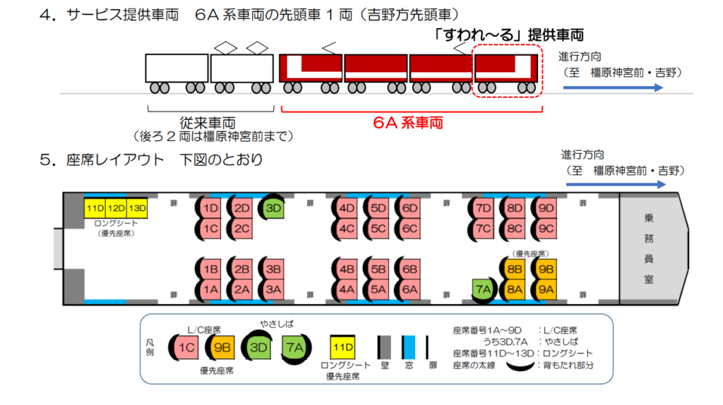さきほどから“対象車両”というワードが出てきますが、今回のサービスは該当列車の橿原神宮方先頭車のみとなっています。使用車両も2026年5月19日から運行が開始される新型一般車6A系と発表されています。