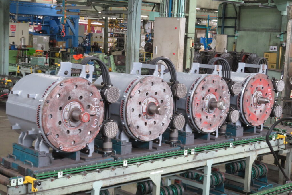 検修庫内には、整備中とみられるモーターやMGなどが置かれていました。