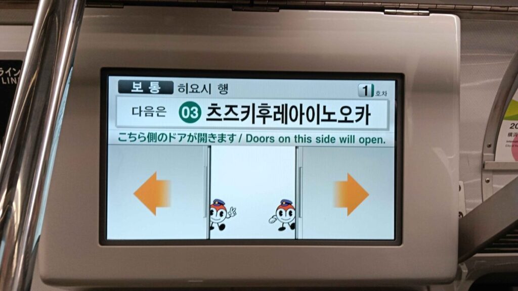 また、横浜市営地下鉄グリーンラインではLCDの画面にもはまりんが登場しています。