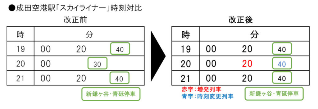 成田空港発20時台のスカイライナーを1本増発!これによりスカイライナーは一部時間帯を除き20分間隔での運行となり、「いつでも」「待たずに」利用できるようになります!!