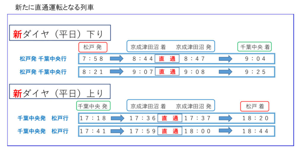 松戸線と千葉線の直通列車が2006年の直通開始以来初めて増えます!!やったね!!!!