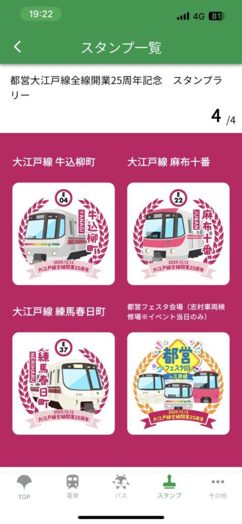 さて、今回の都営フェスタにあわせて大江戸線全線開業25周年を記念したデジタルスタンプラリーが行われておりました。俺は今回都営フェスタへ行く前にそちらを済ませておりましたので、前座としてご紹介します。