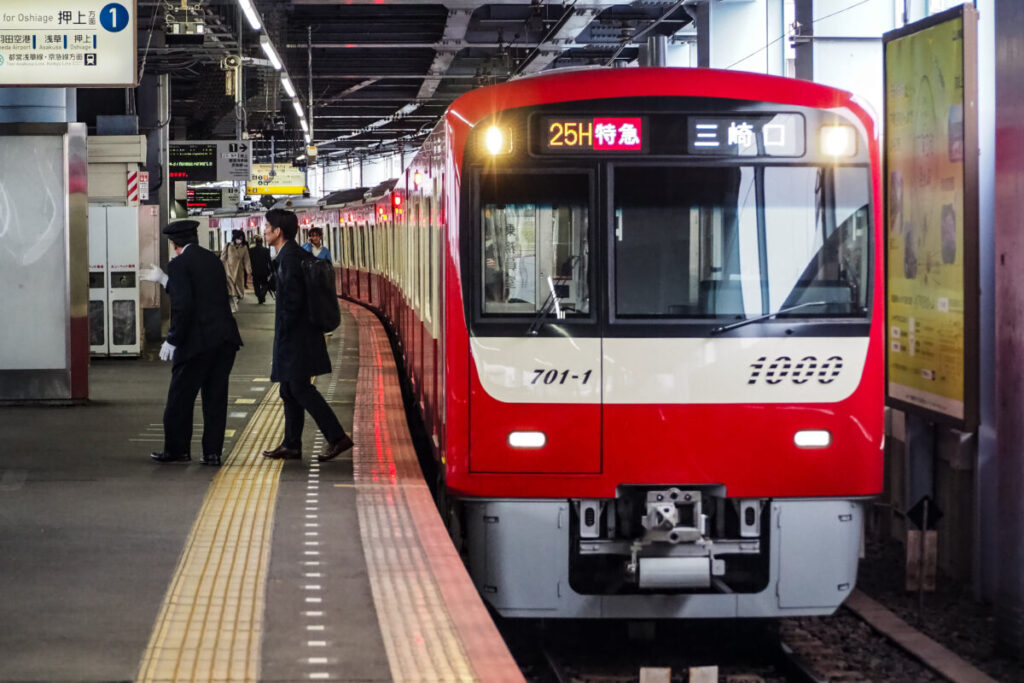 赤い電車でお馴染みの京急線。羽田空港や横浜などに向かいます。ちなみに赤だけでなく、青や黄色の電車も少しだけいたりします。側面が銀色の電車もいますよ。