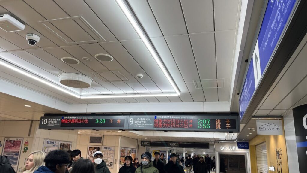 時刻は深夜2時頃、真夜中にもかかわらず人の多い新宿駅16番線。やはり都心であることや年越しであることから、普段より駅へ来る方も多かったことが見受けられます。
