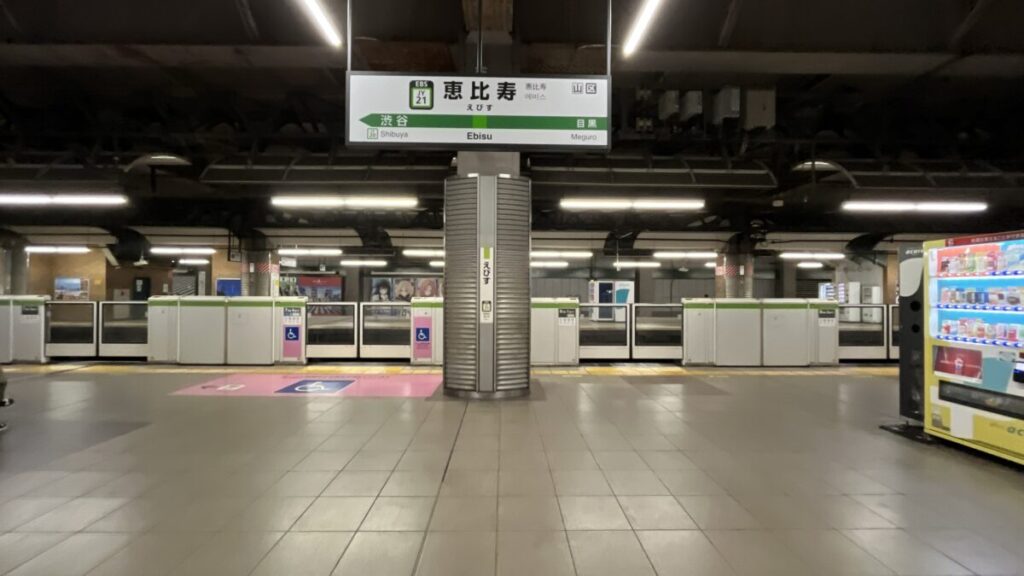 さて、恵比寿で軽食を摂るため一度降車しました。なんか表示バグが起こってますね、踊ってる人に見えなくもない。