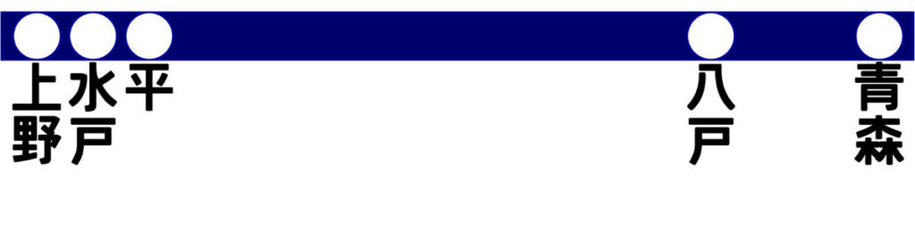 上野・仙台・一ノ関・水沢・北上・盛岡・一戸・三戸・八戸・三沢・野辺地・青森