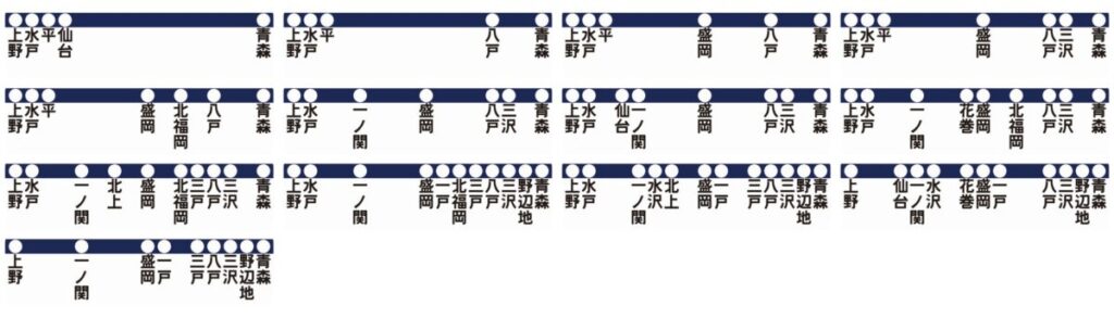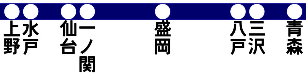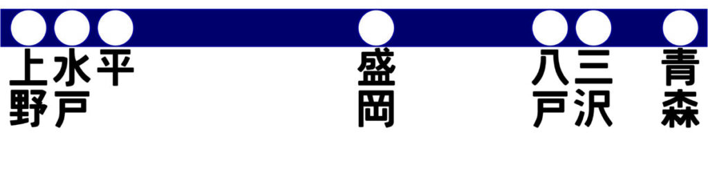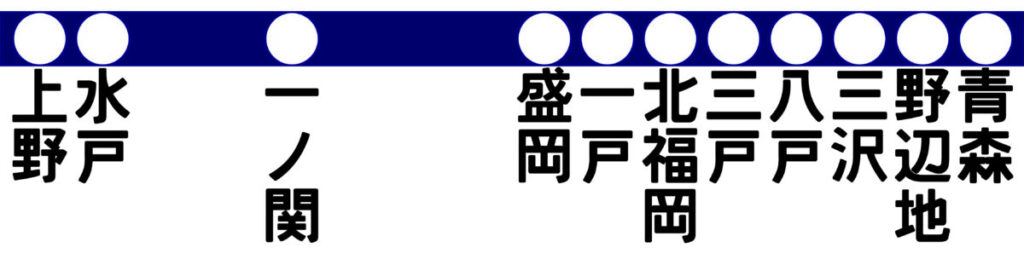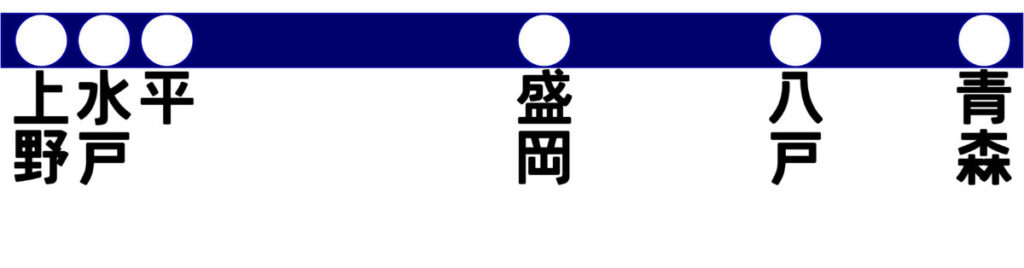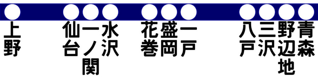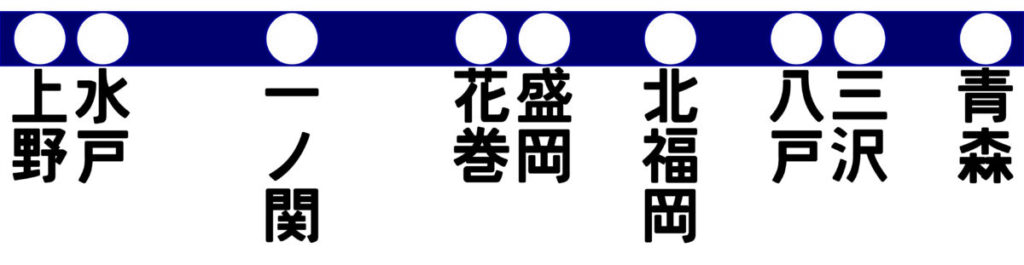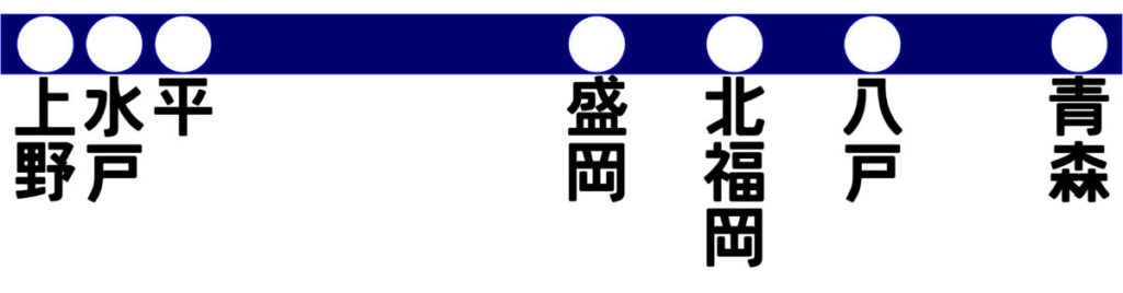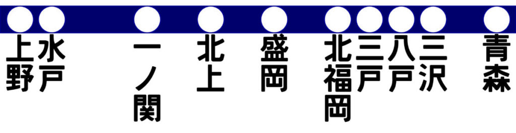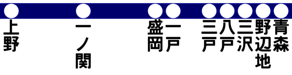 上野・仙台・一ノ関・水沢・花巻・盛岡・一戸・八戸・三沢・野辺地・青森