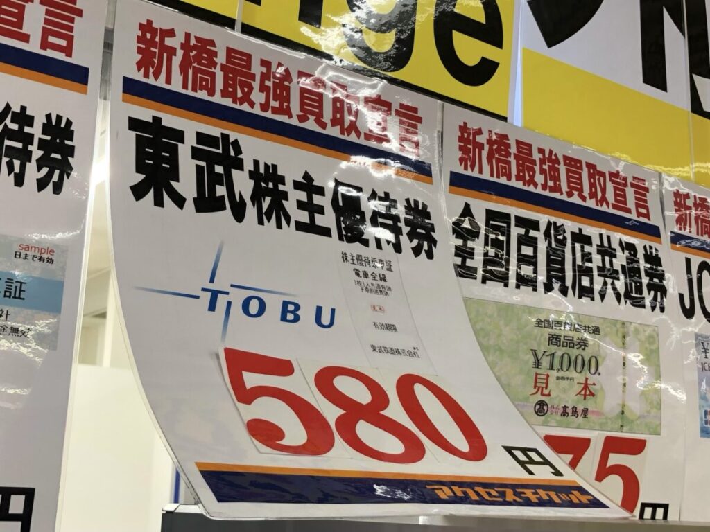 さすがに僕は株を持てないので、金券ショップで購入する形になります。今回は御徒町にあるお店で1枚750円で購入。相場は650〜1,000円といったところ。(ちなみに580円を見たことあります)