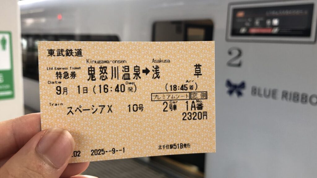 格安だけれども乗車列車に制限はなし。特急券を別途購入すれば特急列車やライナーにも乗車可能となっていて、私もスペーシアXに乗ってきました。プレミアム価格な列車ですが、優待券を活用することで負担額が減少するのは魅力的ですね。