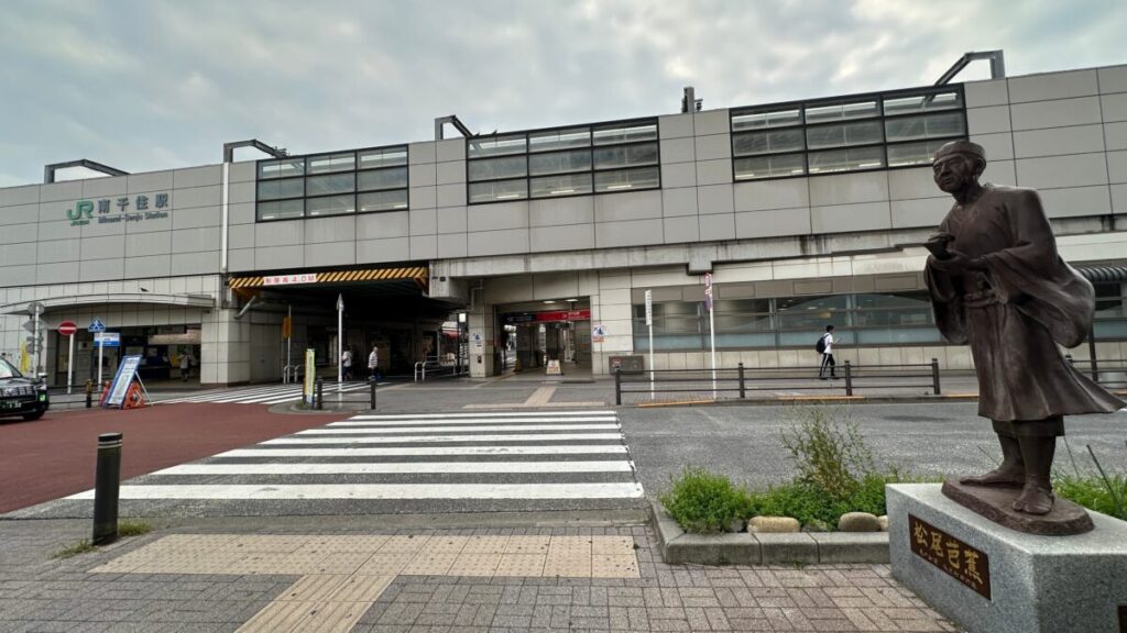 南千住駅前には1689年におくのほそみちの旅をスタートしたとされる松尾芭蕉の銅像が建立されている。