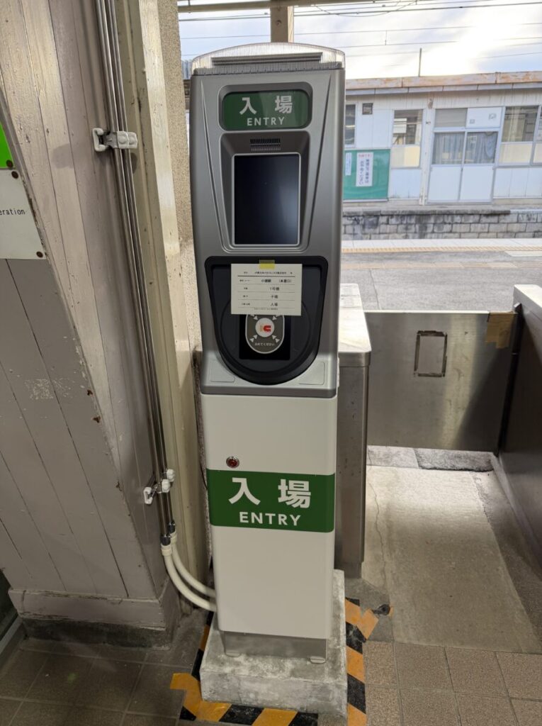 ではなんで小諸駅にはこっちが導入されたのか。単に改札の大きさの問題と思われます。小諸駅は終日有人駅で、かつてからの主要駅ということもあり改札口の広さには余裕があります。なのでこのいわば従来型の入場と出場が別のタイプが導入されたのではないでしょうか。そういう観点で考えると他に