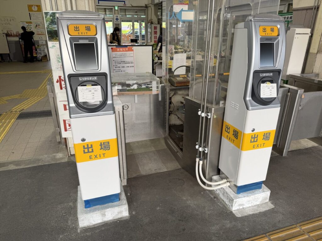 おそらくこちらの方が見たことある方多いのではないでしょうか。そう、入場と出場がそれぞれ分離されたタイプの簡易改札機です。というのも入出場兼用タイプって2023年の秋田・盛岡・青森エリア導入時に初めて登場した新型なんですよね。技術的なことに明るくないので詳しくはわからないのですが、運賃計算処理を改札機ではなくクラウド上で行うようになったため導入が可能になったタイプだと聞いております。